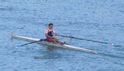 手入れされた(?)自艇を漕ぐ嶋田氏 Head Of The Setaにて。