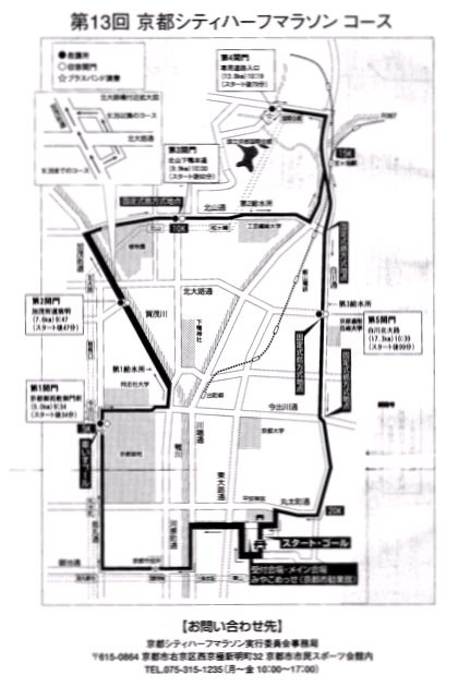 「今度、琵琶湖ドラゴンで3月12日の京都シティハーフマラソンにエントリーしますけど、出はります?」琵琶ドラの坂井代表のお誘いが私のハーフマラソンデビューのきっかけとなりました。中学・高校と陸上の中距離をやっていたので、かねてからハーフorフルマラソンは機会があれば走りたいと思っていました。どうせ走るなら、私の生まれ育った京都の街、中長距離ランナー憧れの都大路を走れることに胸を膨らませていました。2年前は先着順に間にあわず、出場できなかったので、ふたつ返事でエントリーをお願い。陸上部時代の同世代が高岡寿成選手(マラソン、長距離種目の日本記録保持者)だったので、「同い年の彼がやれるなら俺もやれる!!」と変な勘違いと気合もエントリーの一因です。当倶楽部の上原君も一緒に飲んでいましたので、ともにチャレンジすることになりました。(←後日、今城代表もエントリーしていることが判明。オヤジ達のガチンコハーフマラソンの火蓋が切って落とされました。)