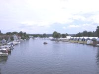 記念すべき第一回大会は1839年に開かれ、第一次、第二次世界大戦中を除き毎年開催されて来ました。ボートを漕ぐ人々にとってこの大会で勝利することは最高の栄誉であり毎年、世界各国から200を超えるクルーがエントリーします。日本からは三菱ボートクラブがよく出ます。レースはGrand Challenge Cup(8+)、Stewards Challenge Cup(4-)、Queen Mother Challenge Cup(4X)と言った、複数のカテゴリにーに分かれておりすべて2杯レースです。物足りないような気もしますが見る者にとってはこちらのほうが一騎打ちで迫力があります。当然、1日に行われるレースは限られるため、期間は5日間に渡ります。予選を消化するために朝は8時から夕方7時までレースは続きます。距離はすべての種目、1マイル550ヤード(2112m)。これもまた伝統。