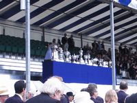英国らしく観戦するにも伝統的スタイルがあります。Stewards Enclosure(大相撲でいう桟敷席みたいな特別席)ではドレスコードが適用されます。男性はジャケットにタイ、女性はドレスまたはスーツ着用。おまけにスカートの裾は膝下にという厳しいルールが今だに守られています。携帯電話使用は当然禁止。紳士淑女の皆さんはシャンペンを飲みながら優雅にレースを観戦します。レースの模様は放送で逐次紹介されます。ゴール近くに来ると観客席からは大きな拍手でクルーの力漕を称えます。決勝はどのレースもさすがに肉薄しているので最後まで目を離せません。一方で午前と午後にはちゃっかりティータイムブレイクを入れているところなどいかにも英国らしいところです。