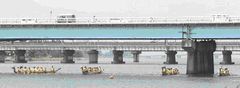 コースは約250m、4コースで国道1号線橋をスタートとし、唐橋に向かって行われます。驚くのは、なんと瀬田橋本自治会は、この大会のために12人漕ぎのペーロン艇を4艇保有しています。