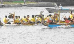 ペーロン競技は、招待レースになっており、近隣の各自治体が招待され、今年は8チームにより競われていました。