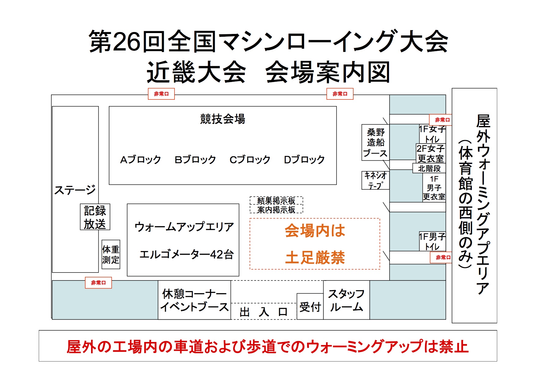 - 2013-01-13:体育館内案内図掲載 体育館内は土足厳禁です。上履きをご用意下さい。