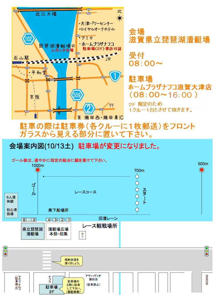 台風17号の影響で上記に延期しました。 - コース: 琵琶湖漕艇場(300m)