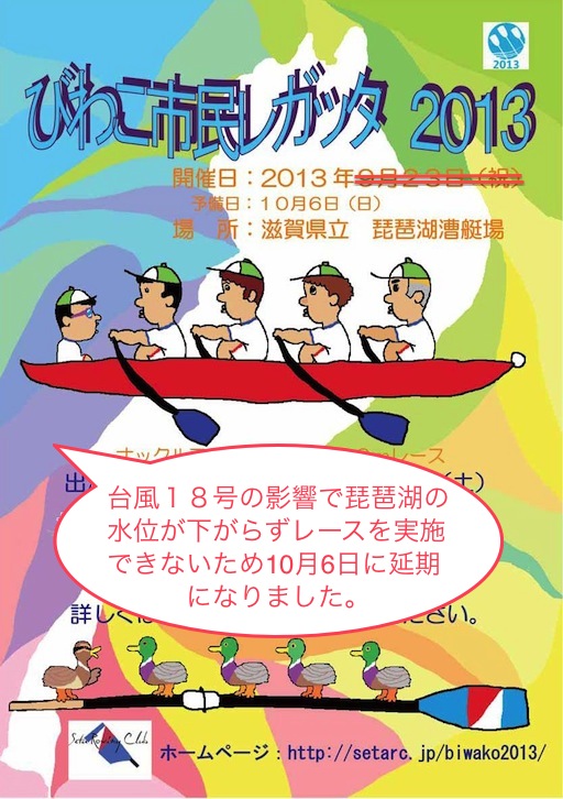 - 台風の影響で水位が下がらなく危険なため、開催日を10月6日(日)に延期します。: 2013-09-19